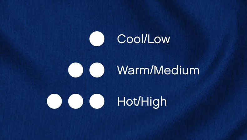 The more dots you see on the tag mean the more heat the clothes can take. One dot means cool or low heat, two dots for warm or medium heat, and three dots for hot or high temperature.
